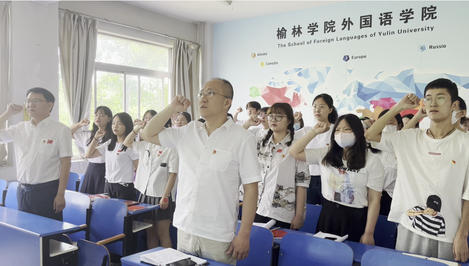 不忘初心,牢记使命,郝倩老师带着大家重温了入党誓词,大家铿锵有力、目光坚定的宣誓,每一位党员再一次接受心灵的洗礼。