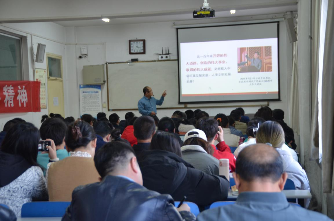 高吉利院长指出,张校长的党课和郝万喜老师的讲座脉络清晰,重点突出,观点精辟,见解独到,加深了同志们对党的十九届六中全会精神的理解。他号召同志们将学习十九届六中全会精神作为当前最重要的政治任务,把学习和落实工作任务结合起来,全面推动本部门的工作,促进学校高质量发展。