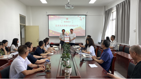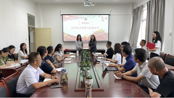 表彰先进,分享经验促提升:学院党总支对在教学、科研、管理服务等岗位上表现突出的优秀共产党员进行了表彰。随后,优秀党员代表结合自身工作实际,分享了他们在践行党的宗旨、发挥先锋模范作用的经验和心得体会。