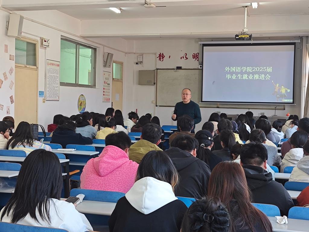 为深入贯彻落实国家“稳就业”“保就业”决策部署,扎实推进2025届毕业生就业工作,3月21日下午,我院于联402召开春季就业推进会。学院党总支书记李季、党总支副书记苏毅、毕业班辅导员及班主任出席会议,2025届全体毕业生到场参会。会议聚焦就业形势分析、政策解读、求职技能提升及岗位推荐,全方位为毕业生就业保驾护航。
