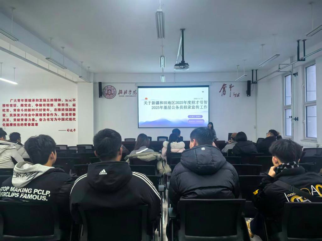 12月4日下午,bv伟德源自英国始于1946“新疆和田地区2025年度招才引智—基层公务员招录”专场宣讲会在子洲楼231宣讲室成功举行。宣讲会面向2026届毕业生及学院学生党员,深入介绍西部基层就业政策与机遇,引导青年学子将个人理想融入国家发展大局。