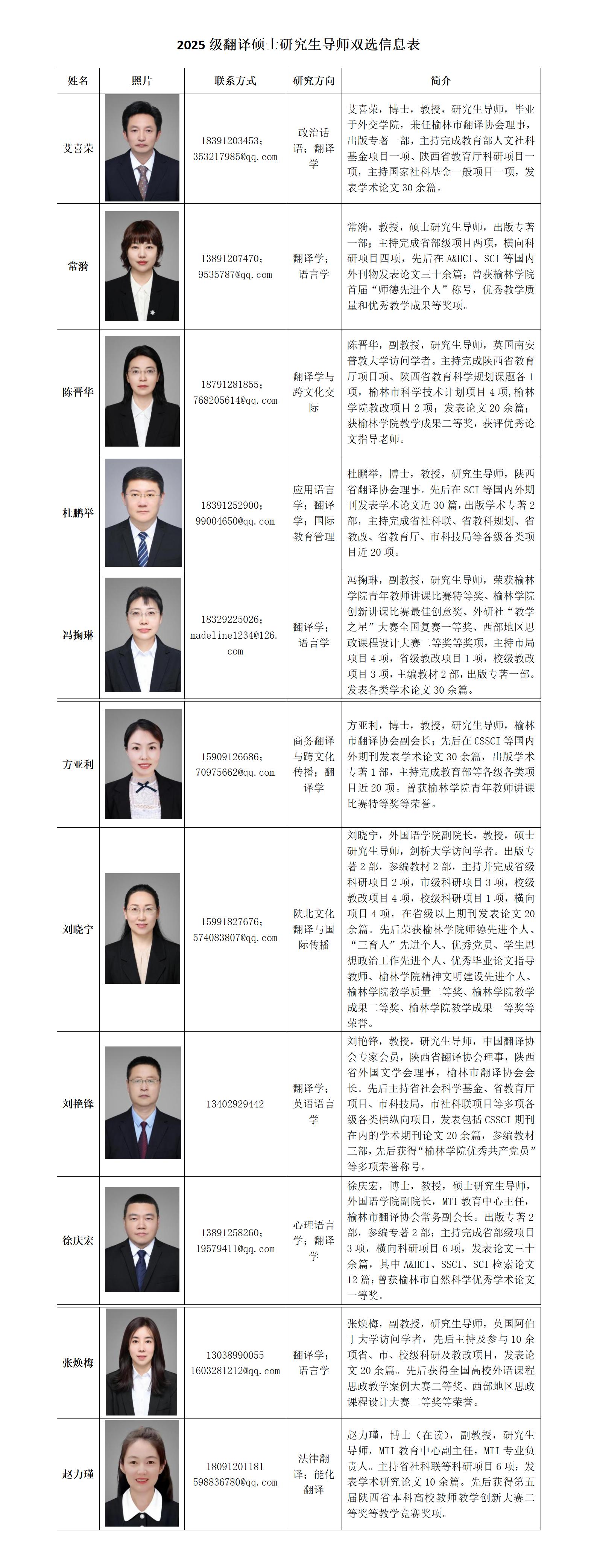 2025级翻译硕士研究生导师双选信息表
